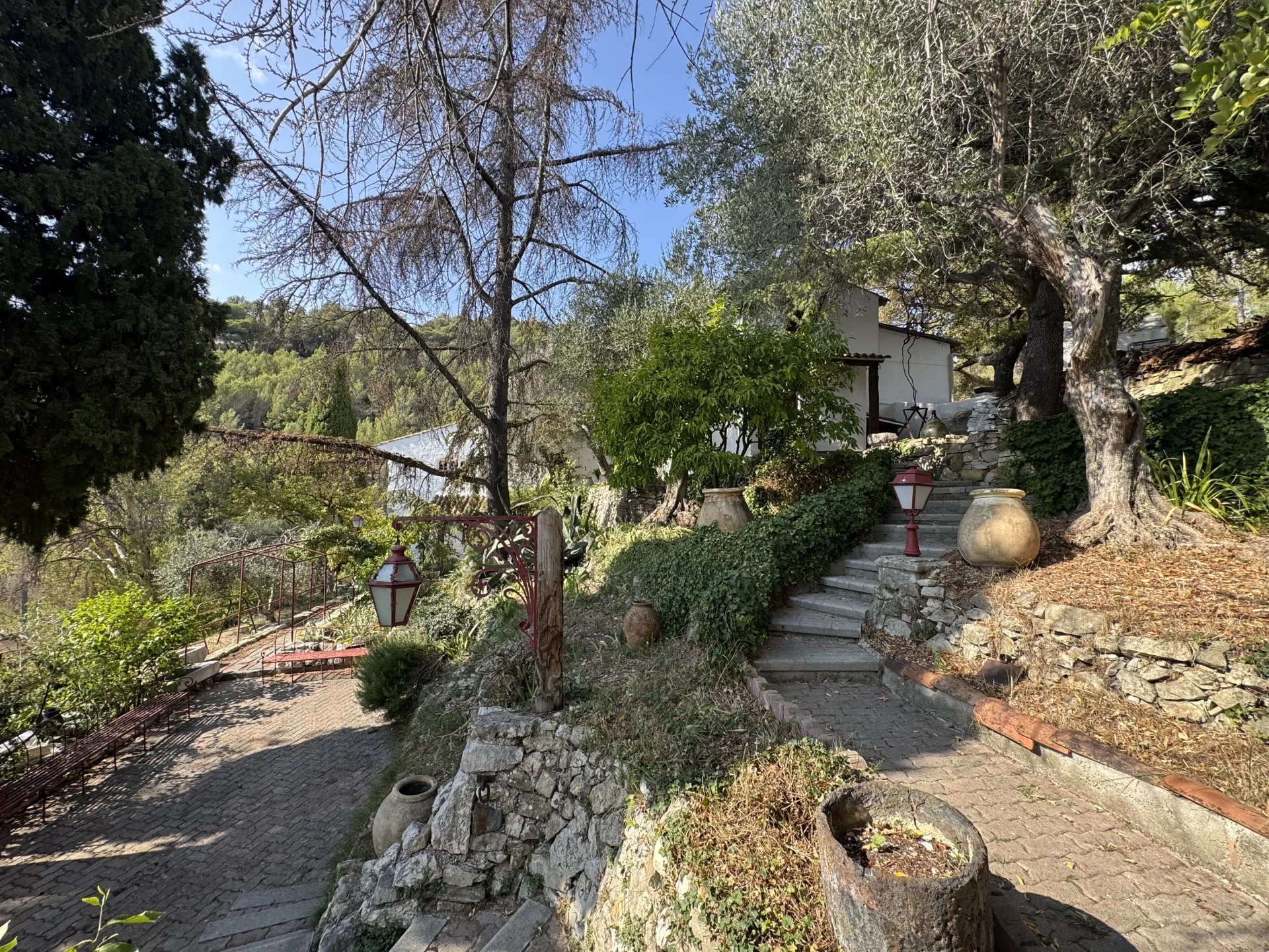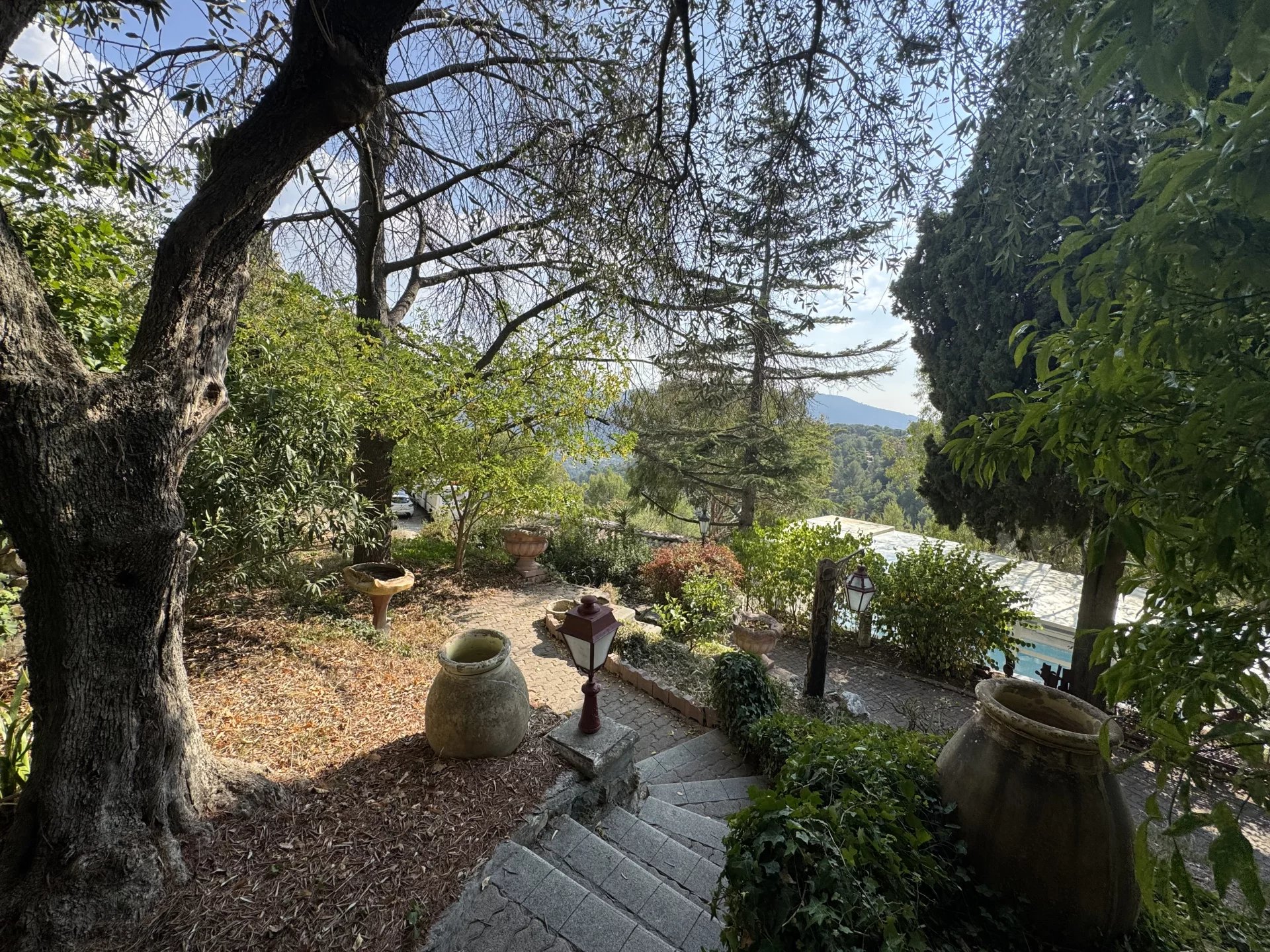 Dans un écrin de colline, propriété atypique dans un cadre verdoyant où est édifiée une belle bâtisse en pierres de 8/9 pièces de 223m² habitables avec piscine, caves, garage, bassin et forage.