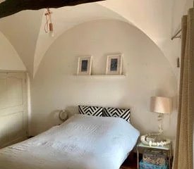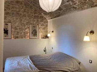 En rez-de-jardin, 2 belles chambres voutées et leurs terrasses individuelles, couloir donnant accès au jardin.
